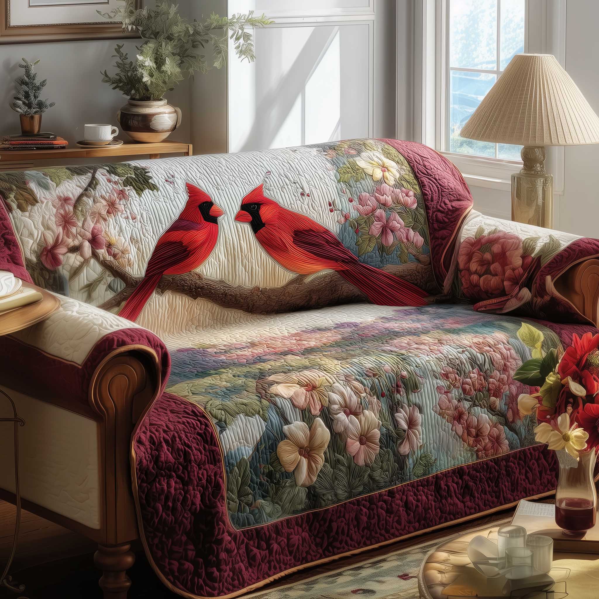 Cardinal Love Quilted Sofa Cover GFTOMA8867